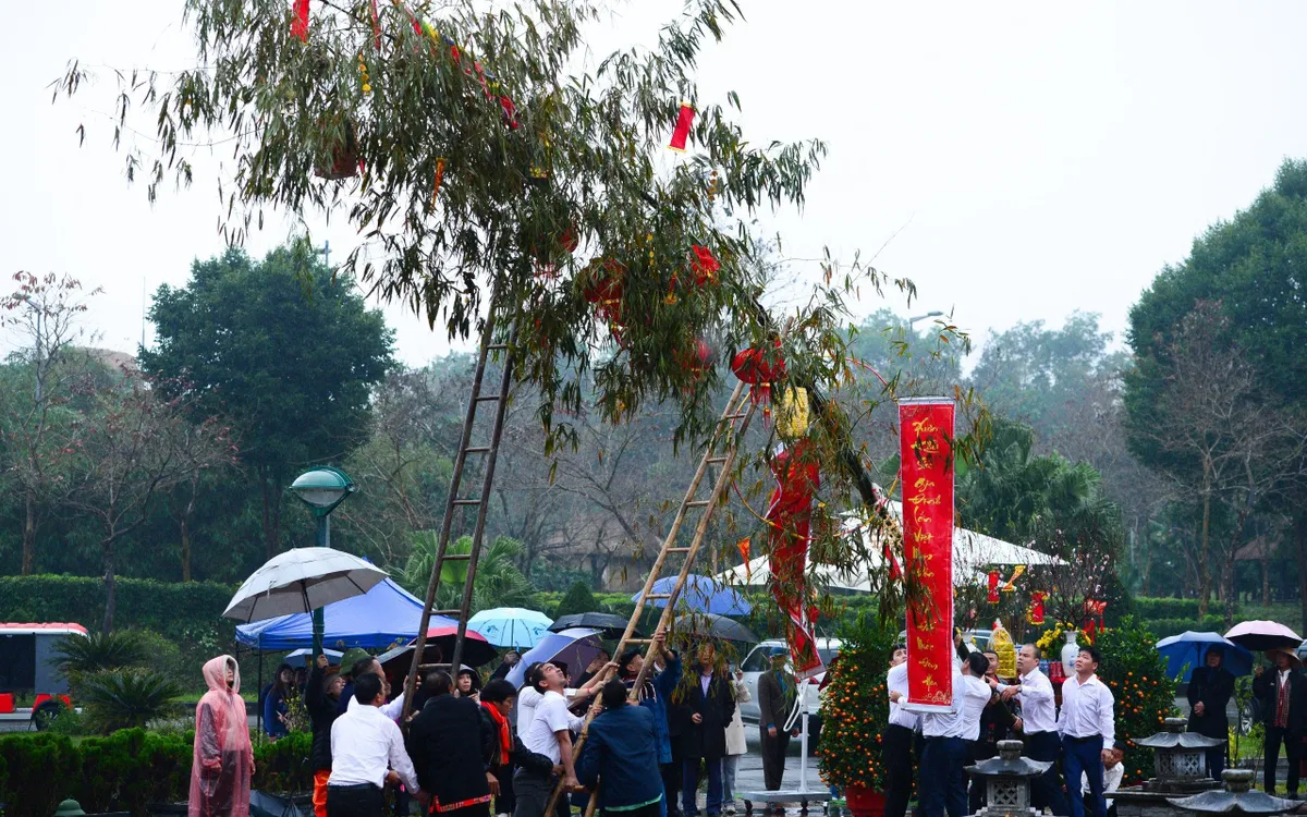 Cây nêu vươn cao giữa không gian thờ tự, mang theo ước nguyện về một năm mới quốc thái dân an.